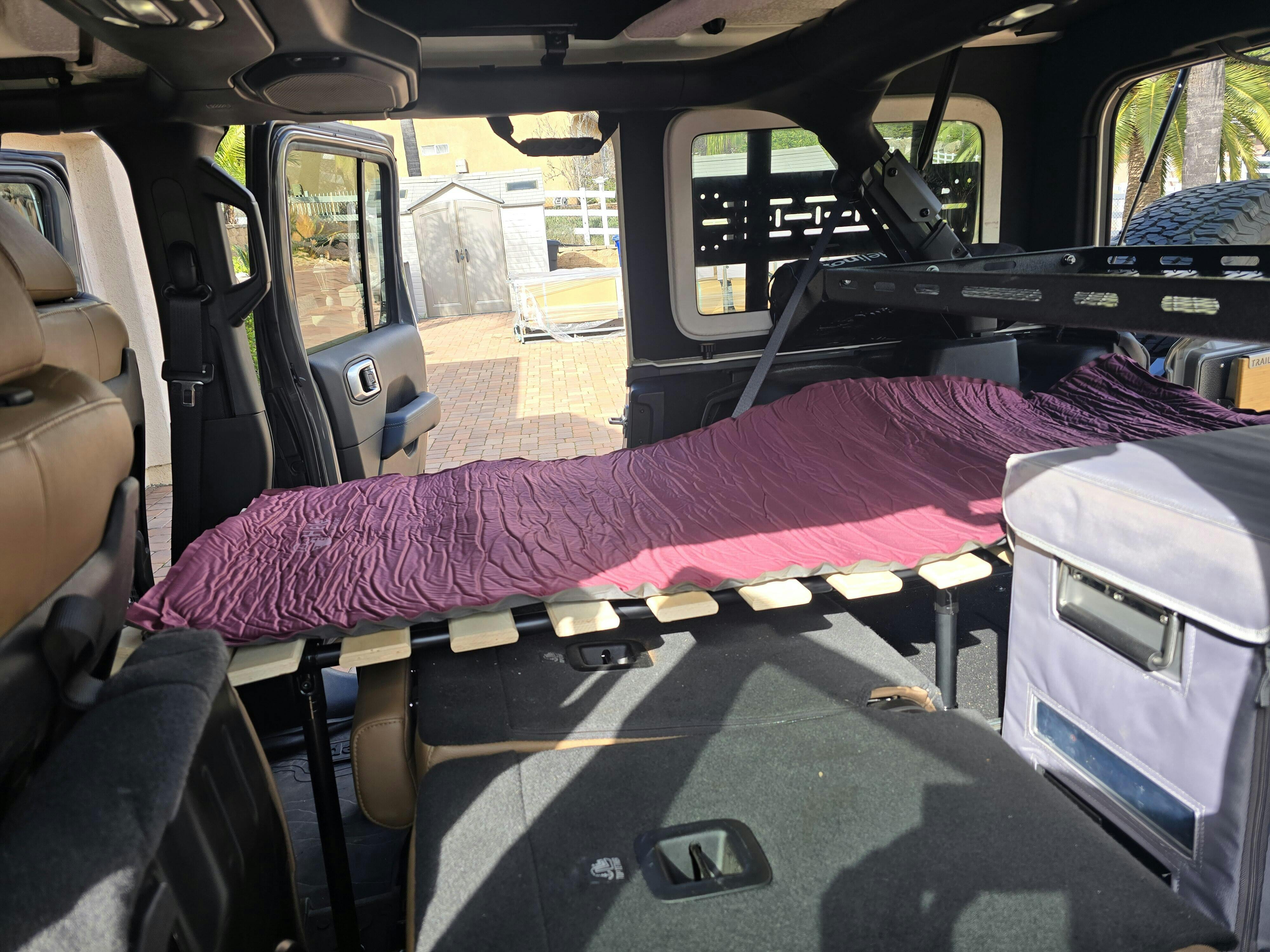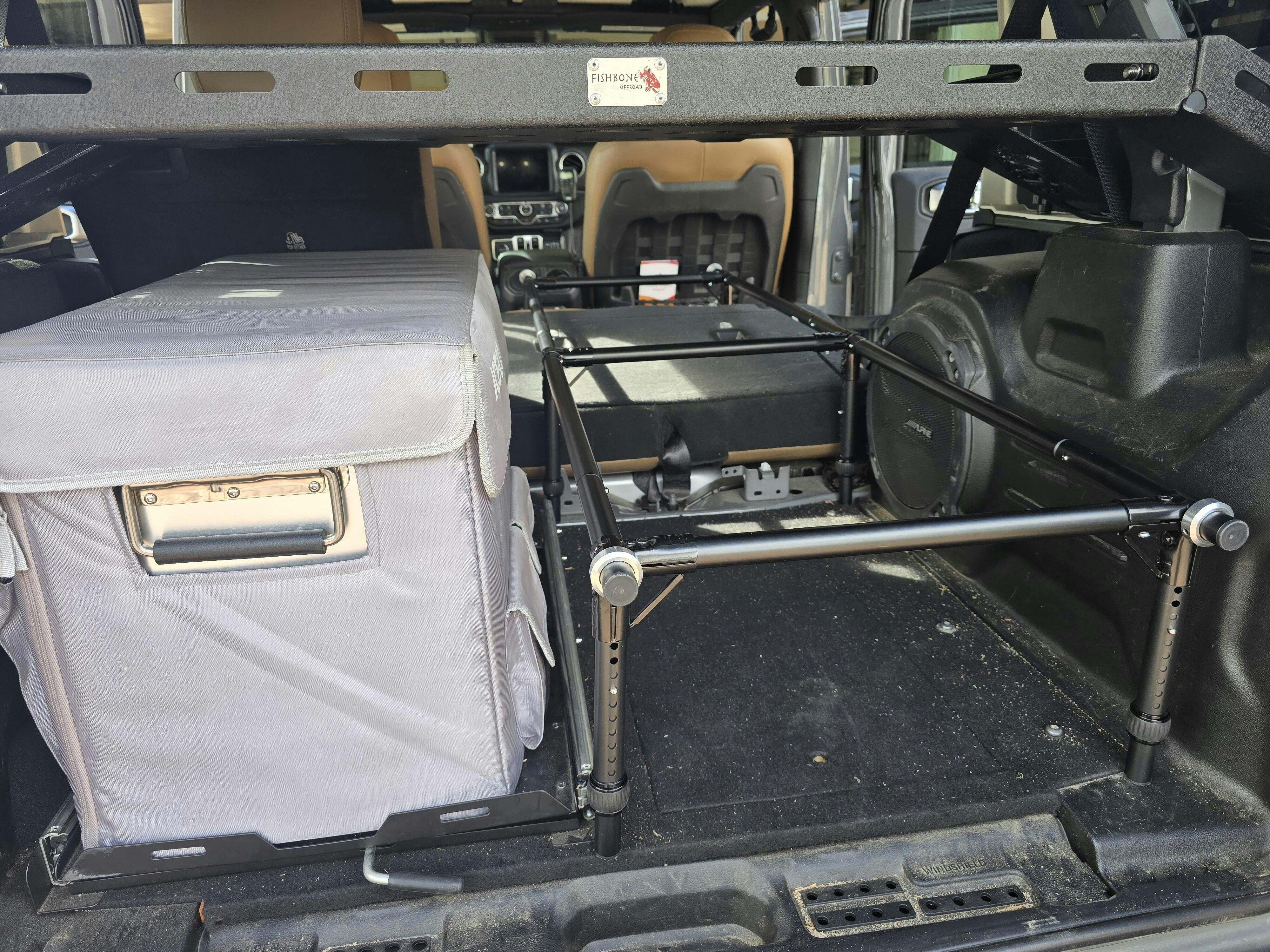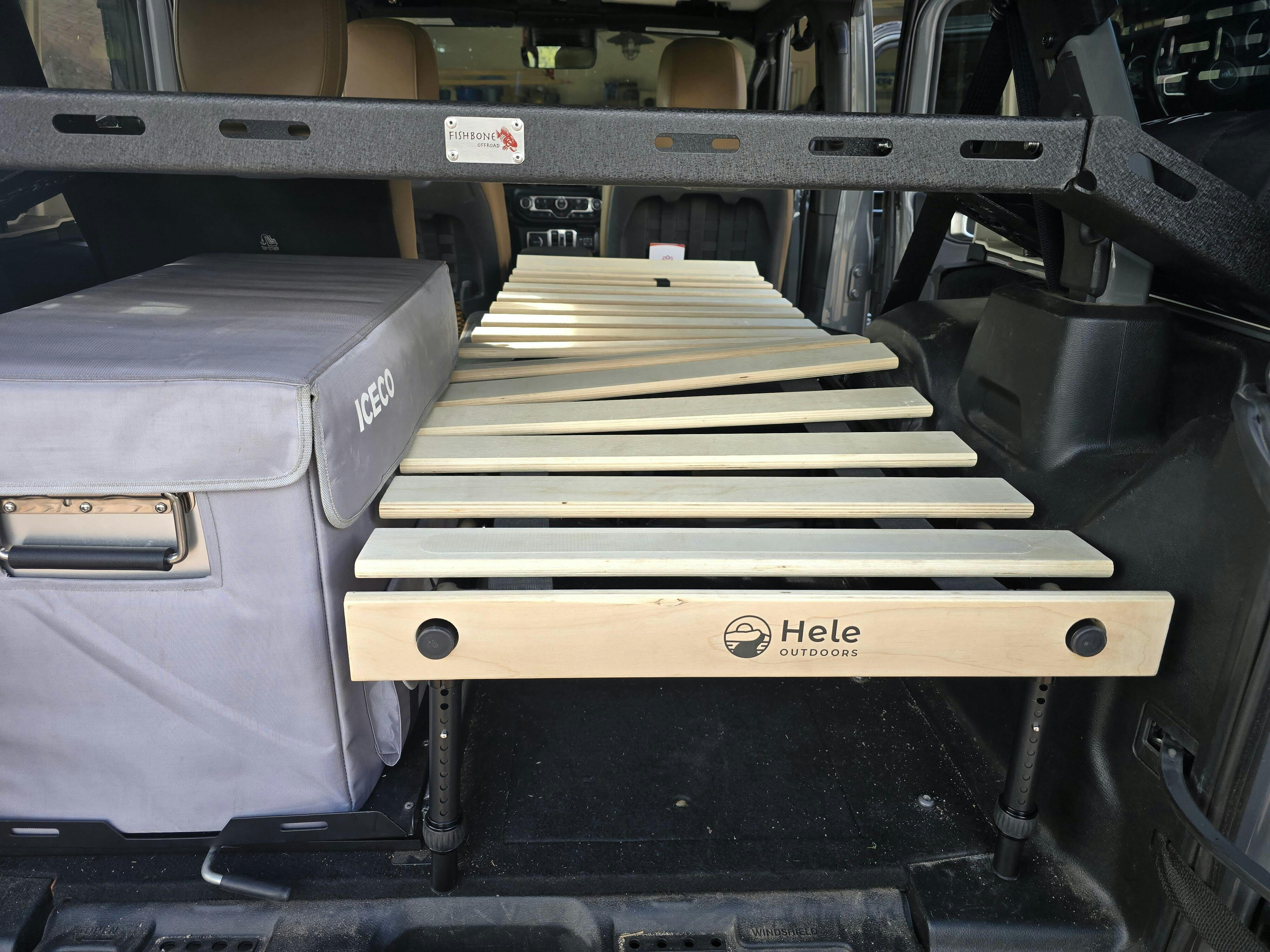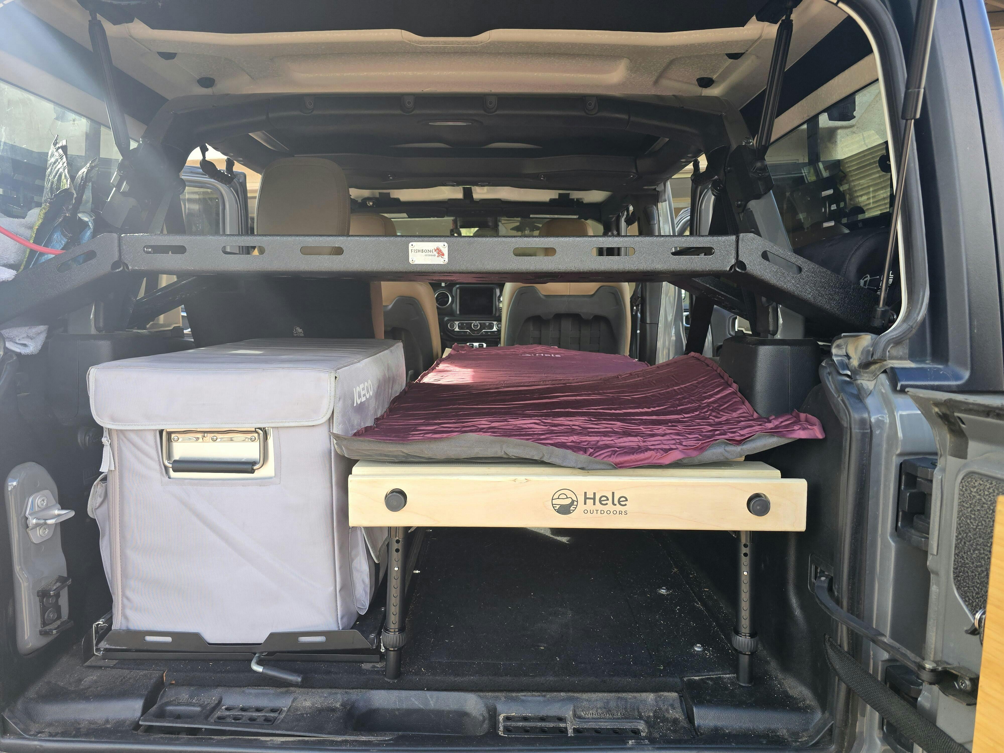 I have been looking for the longest time a sleeping platform for one of the hardest vehicle to setup. A Jeep Wrangler 4xe. On top of that, my setup has a 12v Iceco fridge, a Tralgater tailgate table, and a Fishbone Offroad storage rack. Unless you build one out yourself, it was hard to find a prebuilt platform. Well, Hele Outdoors to the rescue. With a little bit of finalging, I was able to get the perfect setup. I do have to remove the bottom section of the seat, which is easy to do in less than 5 minutes, and I still have to make a small modification by trimming about 4 wood panels on the top platform to go around the subwoofer as you can see in the picture (which I will update this review when done trimming), but I believe I have the setup I am looking for. I am able to keep everything in place, and I can use the sleeping platform as a platform to store all my overland gear while traveling. I am using the Hele Solo, with the shortening kit and the Hele Pad. I thought I needed the stubbies, but did not need them. The Hele platform allows a lot of adjustment to make things fit. I am a truly a happy overlander.