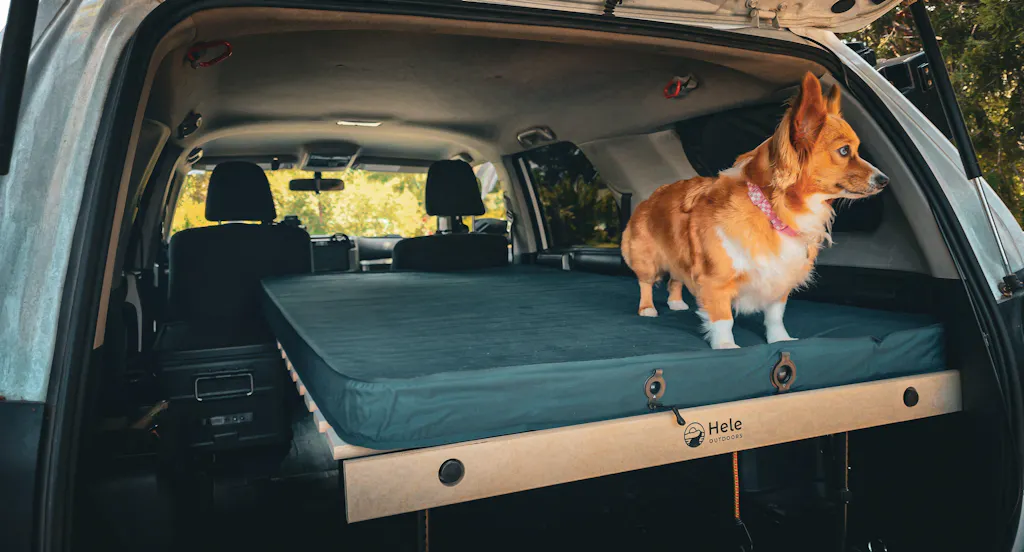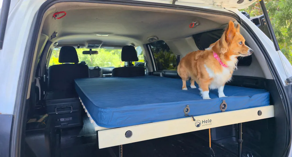 Stoked on my new helebox duo! Fits in my 5th gen 4runner perfectly. Bonus; my iceco fridge fits right next to it for easy access now, no more having to muscle it around to get to it. Thanks to everyone over at Hele Outdoors for an amazing product. Very excited for the many trips to come. My corgi loves it too. 🤙 thx fam