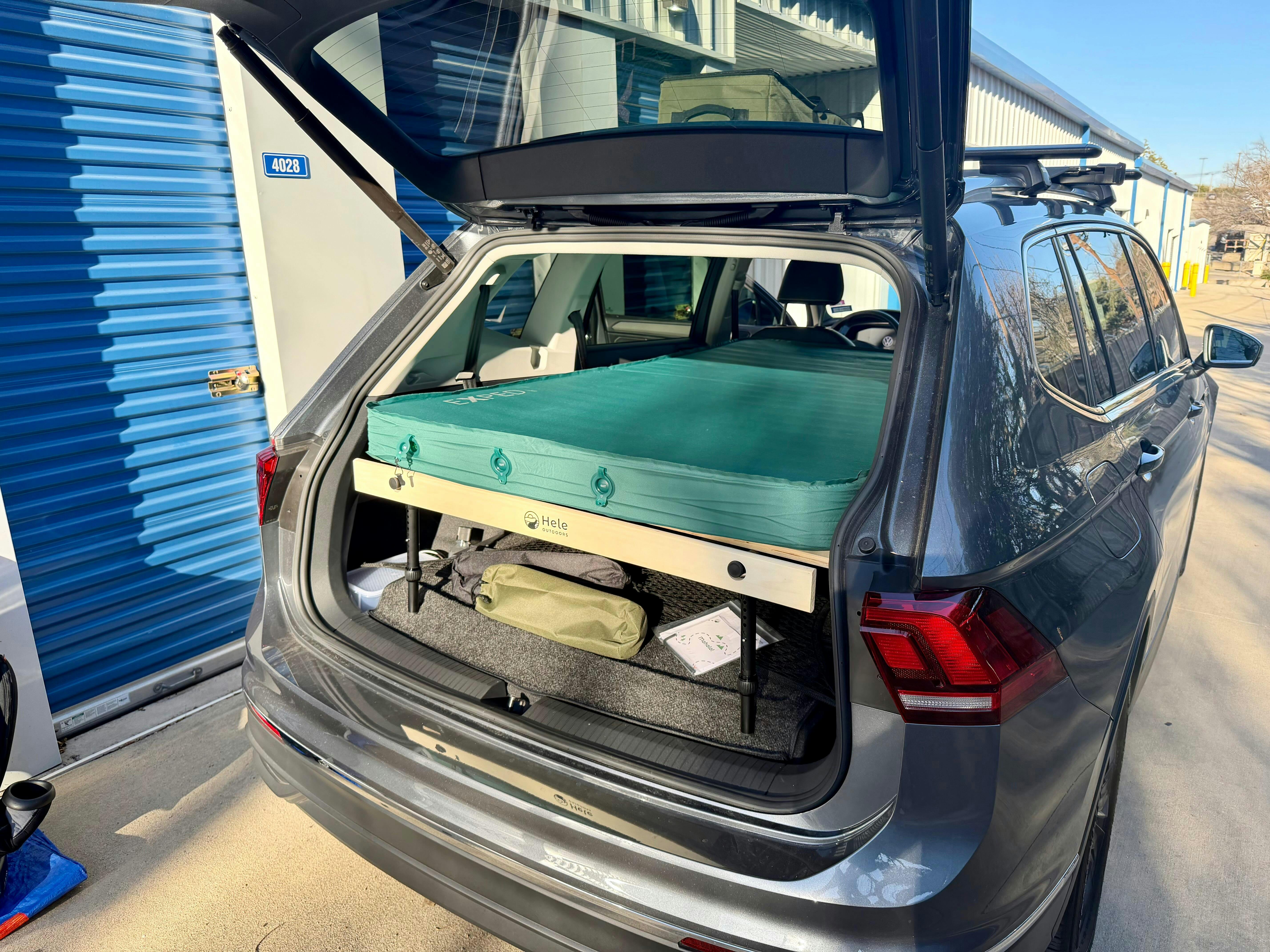 Lightweight sleeping platform + storage system + camping table that fits into most SUVs/Trucks/Vans. Go from daily-driver to car camping in minutes!