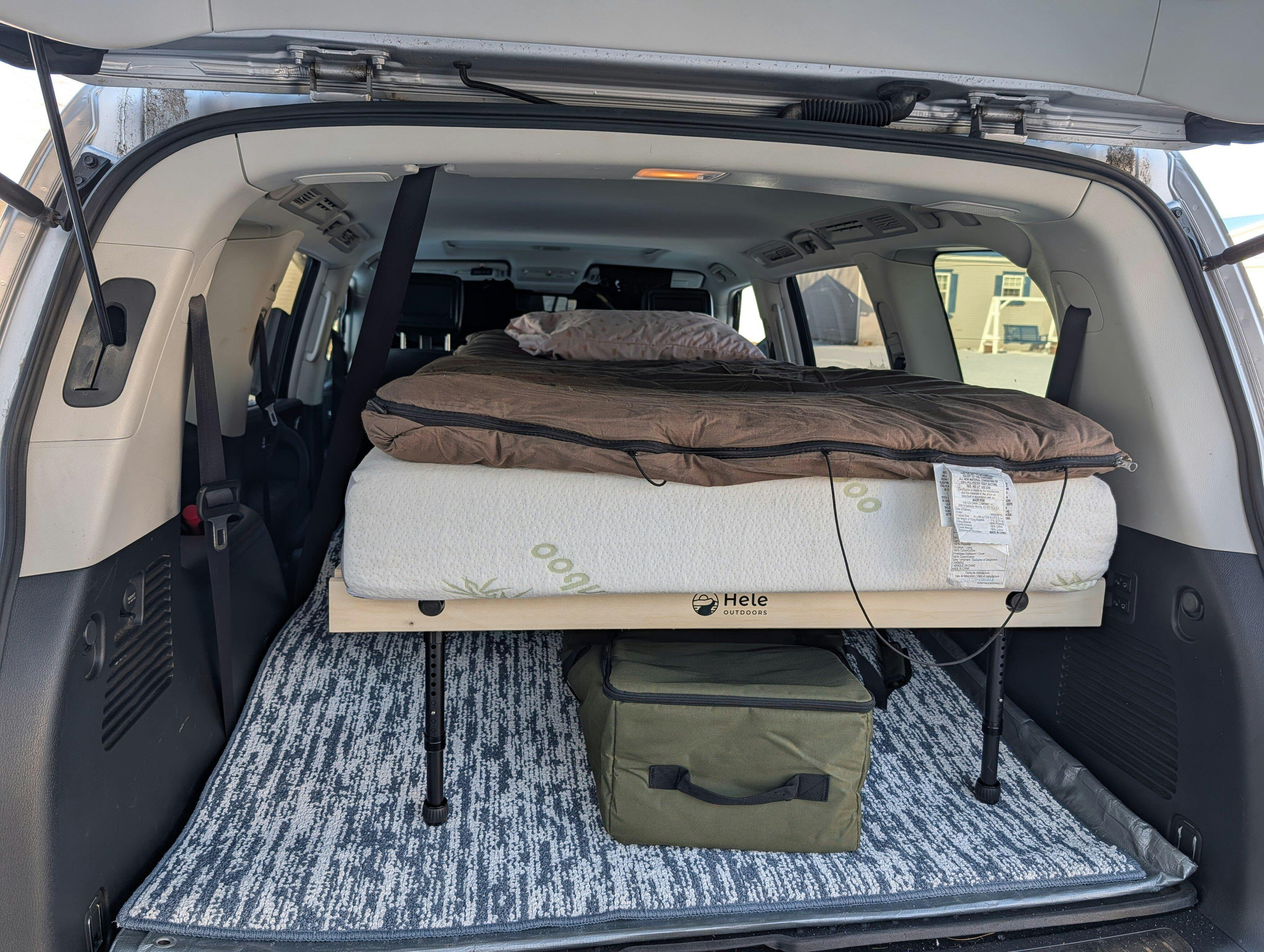 Set up was a breeze due to the clear instructions and labeled pieces. I assembled the frame inside then carried it easily out to my Armada. Then the true test - how would it fit level in the notoriously uneven interior. It works, I'm happy to say! With my 6" trifold mattress there's not a ton of headroom but I love the storage possibilities underneath. Very happy camper here!