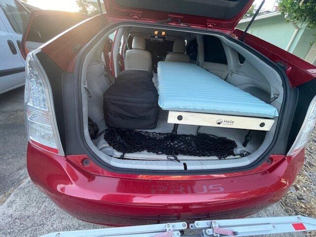 I've been searching for a practical bed option that I could use in both my Prius and my RAM ProMaster City as well as light enough to carry through the airport when I fly and rent a SUV at my destination. I regularly drive to OR and NV to work on vacant land and was looking to fly instead of making those long drives. I previously bought a modular camper box (solo bed) but that bed is 40lbs so not practical to bring on flights and wouldn't fit in most rented SUV. That camper bed only fit in my van. Hoping for a better solution, I kept searching and was delighted to find the Hele Box. This elegant bed solution checked all my requirements. I like that each leg is easily adjustable so I can level my bed instead of needing to level my vehicle, which is ideal for me because I usually arrive late and in low light. The Hele Box fit great in both my Prius and my RAM ProMaster City and I'm looking forward to flying with my Hele Box =o). Thank you so much for a creative product and I wish you great success.